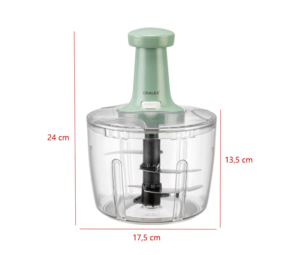 CRALEX Mondo multi-chopper is a real hero in the kitchen! Unlock the pump and insert it into the slot on the lid. To chop, just press the pump with your hand.